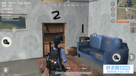 就会得到其他的视野,一边给队友报点队友一边打是最好的配合了,但是要小心被突进,如果没反应过来就会全军覆没哦。 最后是这个带大阳台的房子,这个能看到的视野最少啦。还是老规矩,先1后2。