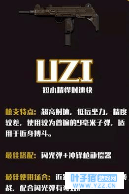 冲锋枪主要分为三种,它们分别是:MP5,MK5,UZI。先来吐槽一波UZI,这把枪是荒野行动地图中刷新最多的枪。这把枪由于射程过近,除了在前期搜房的时候可以使用外,小编不建议一只携带这把枪,毕竟这把枪的作用比较小。不过它也还是可以算作是一把近战神器,如果最后决赛圈刷到城区,携带这把枪来打巷战还是很好用的。