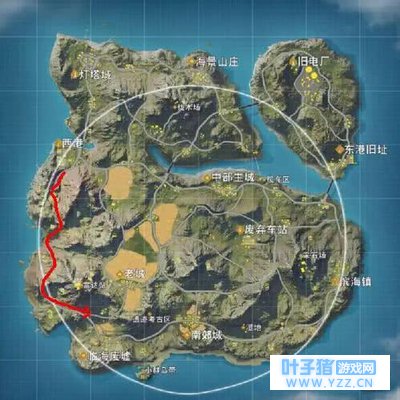 等待最后一波肥之后就能开往信号中心区“守株待兔”了。 在西港搜完一波物资过后,真正的边缘游走型打法开始啦 边缘游走型打法 信号圈在地图偏上的情况下,西港搜刮完就可以沿路一直向上,直到到灯塔城的周围,避开人群的同时尽可能搜刮小的物资点,连一个小房子都不要错过。