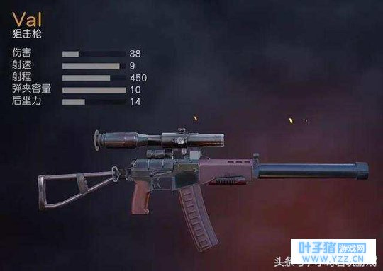 GIF 从上看射击的效果图可以看出,在狙击枪里面,这把VAL可以算的上是射击速度最快的,就算SVD也没有它快,连射的速度,再加上稳定性,都是值得称赞的! 自带消音器和4倍镜 这把枪的另一个优势就是,带有消音和高倍镜,和其他的狙击枪相比,这点完胜所有的狙击枪,拥有了这把枪,想要真心吃鸡,分分钟不在话下。如果是全武器模式,狙击枪是不容易找到的,而找到了4倍镜外加消音器的VAL,就等于是先吃了个鸡腿。