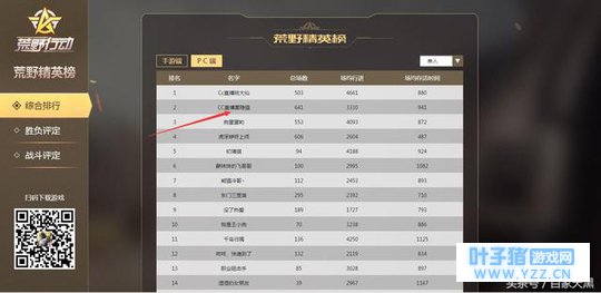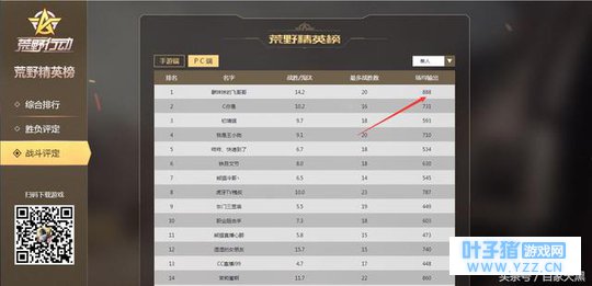 进入荒野精英榜后可以看到战斗评定的第一名场均输出高达888,而KDA更是到了14.2,最高战胜数更是到了20人,真的是远超第三名几条街啊。
