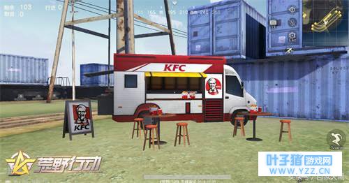最近在荒野行动等待厅出了一种面包车,是KFC主题的画面。主城和老城增加了相应的KFC商店,店中一应俱全,各种设施齐全,点餐机,餐桌等。