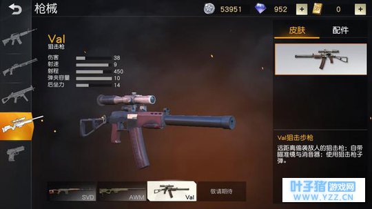 VAL非常的逆天,自带消音器,四倍镜,这把枪简直是为lyb量身定做,非常适合在远距离偷袭别人,最后是那种偷菊花,从偷袭过来,因为自带消音器的一样,远距离的敌人根本分不清你在哪里,敌明我暗,显然的我们的胜算大,
