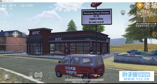 而且,图中可以看到肯德基隔壁还有一辆小红补漏车,那也是肯德基的车啊~目前这家肯德基人有点多,大家去游览要小心敌人的98K 哈~