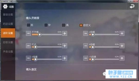 镜头灵敏度这里我都设置成了自定义62%,用着还算舒服。大家可以根据情况调节成自己想要的手感。