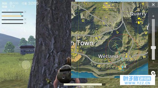 找一个安全的地方待好,注意听周围动静,静静等第一个信号圈出现。 等到差不多的时候我们就开始卡在信号圈的边缘,这一把我们跳的比较好,后面基本上不会有人来,所以可以比较安全的等着毒圈的收缩。当然我们还可以通过预判来进一步的向前走动一段距离,不过一定要预判好100米范围内没有人,这样自己的脚步声就不会被人听到。这个刷圈对于我们现在来说算是比较舒服的了。