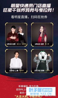 等明星组成的福利快递团,为部分玩家送上千张免费炸鸡卷。