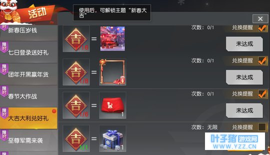 新推出了春节活动系列,通过各种活动手机“吉”字道具,然后可以直接兑换各种奖励,包括春节场景背景,头像框,红色短裤等,累计登录七天可以领取新春降落伞。