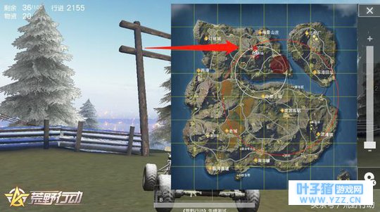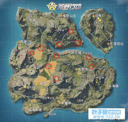 由于是单人组排,你面对的敌人一般都是几个人,甚至更多,所以想要单人对抗多人,落点的选择尤为重要。 图上红圈所标记的地点不仅能够满足一个人的物资需求,而且交通便利,方便转移。 信号区域其次,荒野行动整局演习都围绕着信号区进行,进入信号区也有技巧。