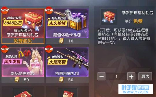 这个新年福利礼包,每人每天可以领一次,下限时100钻石,上限可以得到8888钻,这得看大家的运气了,我的运气就不太好,领的是最少的了,才100个钻。