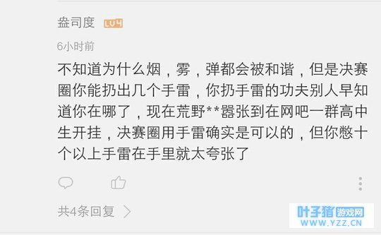 上面你说的是烟雾弹啊,丢烟雾弹等于给别人打屏障,对面知道了你位置也有了烟雾的掩护岂不美滋滋?另外手雷个数是我推荐的,当然是越多越好(决赛圈要扔枪,可以空下空间),看个人习惯。 进来了别忘了点个关注啊!唉唉唉!!!别走别走,关注啊,唉! |