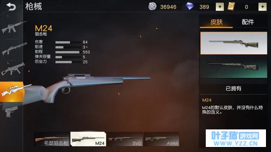 再来说一下这把m24狙击枪 ,在游戏中,枪身相对98k较重,拿着枪时移动速度会比较慢,换弹速度也会比98k慢一些,但是相对98k来说伤害较高。再可以保证准确率的情况下,可以优先选择m24。毕竟伤害在哪摆着呢!