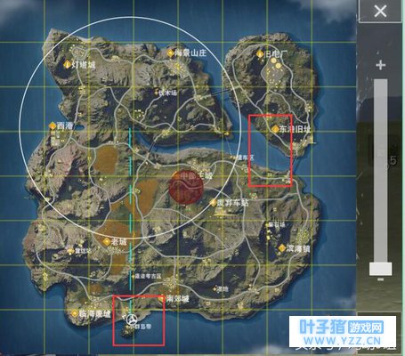 在图中标示的两个地方,就是有椰子树的地方,想要椰壳头盔,就要到这两个地方去找哟。我现在就带你们去找这个帅气的头盔去。 通过路线判断上面东港旧址的人可能会比较多,为了防止有人来打搅我们去找头盔,我们就去下面的小岛群带去好了。那里离航线比较远,应该是不会有人来打搅我们的。