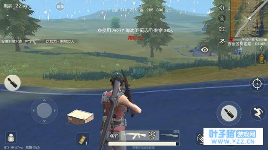 首先和大家说一下跳伞落地后应该怎么打,游戏中要如何快速预判安全区,在飞机上会有100个人左右,飞机飞行过程中如果到达想要落下的位置,可以点击离开,即可从飞机中降落以通过左边的摇杆控制方向和降落速度,并且在一定距离里开启降落伞,到达你想去的目的地,地图中的黄线是飞机飞行的轨迹,一般来说安全区也会在黄线周围。玩游戏的时候要开声音,听别人的脚步声车声,会有脚步的脚印越近就表示敌人离你近,车声也是会有一个轮胎显示,右上面小地图会有提示,大家一定要常看小地图。