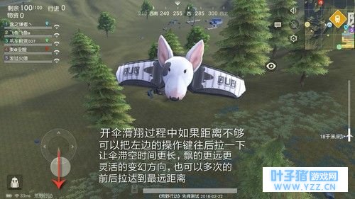 接下来就是关键的隐藏秘诀了,在跳伞的时候先往前滑翔有一个冲劲,然后在把控制键往后拉,不多说看图