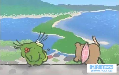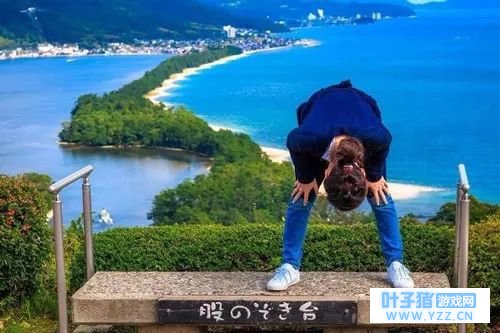 不少游客到此,会背对着景点弯下腰从两腿间向后看,据说这样看“天桥立”才真正有“天上架桥”的韵味。制作团队显然从此受到启发,如果有小伙伴出镜,蛙会做个倒立,相当可爱。 还有这张 COS电影《嘉年华》的游客照,让我非常怀疑,开发团队中有人看过这部电影。