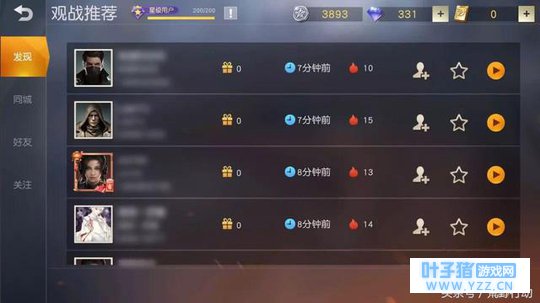 打开游戏,进入 大厅 界面,可以看到左下角的 观战 按钮,点击即可进入观战推荐界面。