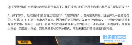 回应友商竞品 Q:别的吃鸡手游上线了,你们怎么看? A:我们非常乐于接受竞争和挑战呀。友商的产品能更好的激发我们团队的拼劲与韧性。只有发挥良性竞争机制,才能为玩家带来更好的产品。吃鸡类游戏综合了传统射击、沙盒、竞技类游戏的优秀特点,带给玩家高自由度和强成就感的游戏体验。市场上吃鸡手游蓬勃发展,是好事,毕竟会有越来越多的玩家体验到吃鸡游戏的乐趣~ |