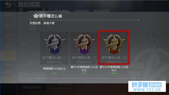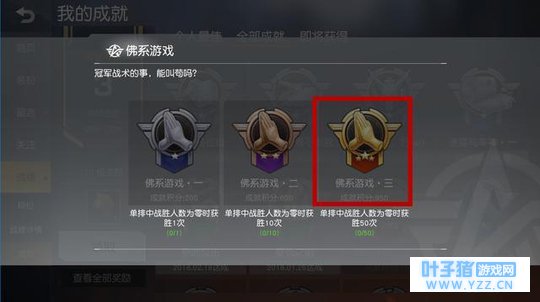 这个成就的标题就有点拽啊,看来这个成就的要求不会太简单,果然,累计20次单局战胜10人及以上...哇,这个成就除非是那些技术非常好的主播或者大神有可能完成,像咱们一般下能够杀十个人我想都是很难存在的吧!可能之前会有这种可能,但是现在大家总体水平都提高了,那更是难上加难~ TOP1佛系游戏