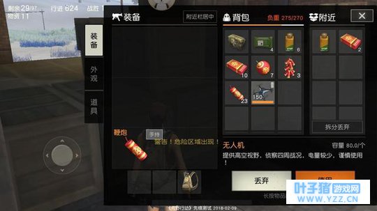 4、无人机 这个道具的稀有度与十五倍镜比起来也是有过之而无不及,这一个专克吉利服的道具在游戏中只要运用得当,简直是所有人的噩梦,什么伏地魔、LYB,在无人机面前全都无处可藏,想要吃鸡,这个道具绝对是你的得力助手!