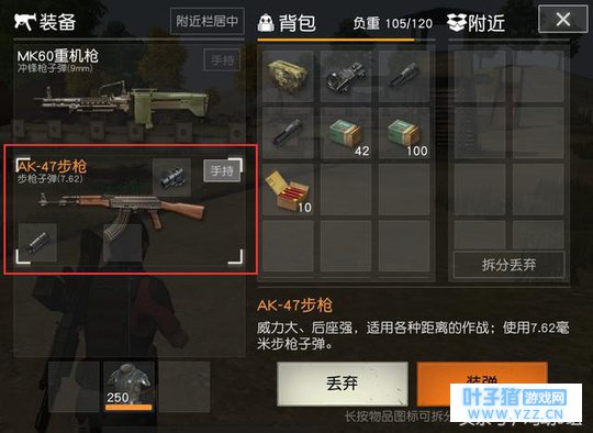 AK-47步枪 作为《荒野行动》中目前唯一一把使用7.62子弹的步枪,可能你在开镜的情况下使用AK的时候,你可能感受不到AK的真正强大之处,甚至还会觉得不是很好用。 但是一旦你拿着满配S-ACR却被AK-47贴脸近身,一梭子带走之后,你肯定会感概,AK-47真的是太猛了。加上之前的更新,AK-47的大后坐力被减弱之后,越来越多的人变得更加喜欢使用AK-47了。