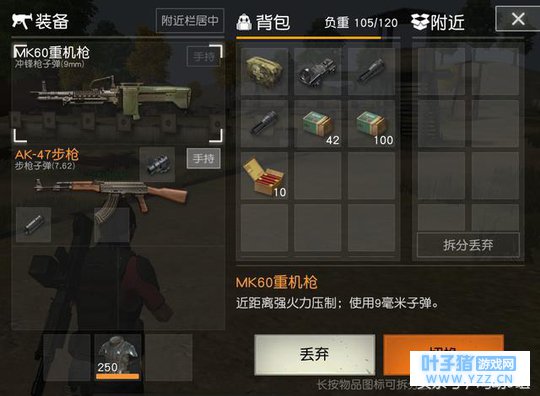 MK60 作为空投武器的MK60本身是不能装配任何配件的,包括倍镜。但是,这有什么问题吗?就算是白板的MK60,射速就已经比大多数步枪高了,而且伤害也不低。更不用说MK60超大的弹夹容量了。 还需要什么配件倍镜呢?见到人,只需要按住开火键不松手,让对方好好享受下《荒野行动》中最狂暴的火力是什么样的吧。 |