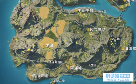 用黑笔圈出的是有官方已标的(物资多且地大的)。我认为这些地方中,(地大房多)物资相对多的是:西港 中部主城 废弃车站 缆车区 滨海镇……都一目了然。物资少的(以我的经验)有雷达站……(必须承认:湿地不熟悉。 小群岛带没去过,但看过视频,物资还ok) 再以要在信号接收区内为目地的话,我最近发现最后是主城 老城以集那些(地图上绿色黄色的)山地。接收区要是在山地,一般会在地图(ps这里的地图中部指我裁剪的下半地图的中部)中部。再以人的多少说:1、中部主城定有许多人,但以人多算杀6、7个就差不多了。2、西港人也有许多但我不常去也不清楚( ̄▽ ̄)ノ。3、再就数车站了。附带一提,我喜欢在车站附近的山坡上杀,有个倍近镜叫ok了,可以采纳。4、老城其实人也很多。 (以上4个地方人数其实都很多!!)5、南郊镇也会有许多人,我都是在房屋的阳台上杀。6、然后缆车区,好像人时多时少。多时差不是一队~7、滨海镇不是很熟,但看上去面积很大。(我认为就是陆地边缘的地方人多不多得看一开始降落,以及直升机的航线)。 以上就是画圈地方的分析~