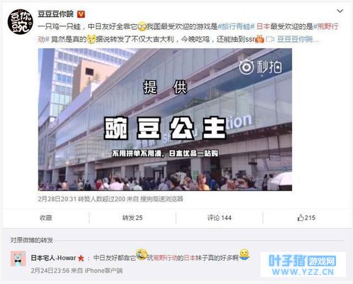 前些日子,网上特别流行一句话——“一只鸡一只蛙,中日友好都靠它”,现在,《青蛙旅行》的热度似乎在悄悄减退,然而《荒野行动》依旧保持大势,日本网友表示,已经控制不住局面了!