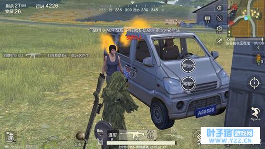 3.碰到人直接跳车钢枪 铁头娃玩家一定掌握的技术,开车又压不死,不如跳车直接打,这个方法行之有效,车可以用来做掩护,让敌人浪费子弹在车上,自己进行一波进攻,虽然是骚操作,但是也要避免在没有掩体的地方跳车,因为跳车时视野是向前,需要转一个方向重新进行瞄准,就会给别人一些时间用来进攻,所以也需要看地形以及攻击者的位置。