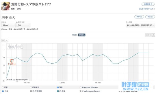 2017年业内最大的趋势基本上可以说是吃鸡游戏爆发,去年3月底发布的《绝地求生》凭借病毒传播一路走红,至今仍是Steam畅销榜冠军。去年年底,国内大厂纷纷祭出了吃鸡手游,动辄数千万量级的dau和数亿下载量让所有人为之一振,但海外分析师曾担忧其收入潜力。 最近,据海外手游分析公司Sensor Tower预测,网易此前发布的吃鸡手游《荒野行动》今年2月份的海外收入比1月份翻了4倍,2月全球总收入突破2400万美元(折合人民币1.5亿元)。