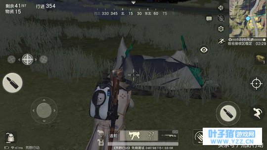 经过短暂的读条后,帐篷就在指定的地方被搭建起来了,玩家可以趴着爬进这个全新的小空间。