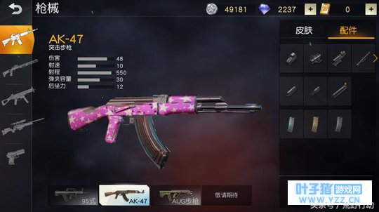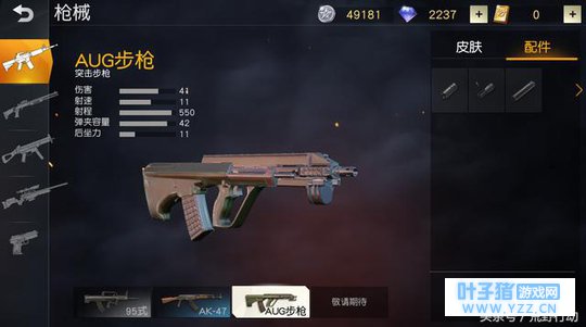 第一把进入空投中的步枪——AUG,拥有步枪当中最大的弹匣容量,而且自带二倍镜,伤害41。