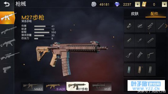 M27,步枪中能够装配最多配件的一把枪,满配后坐力低于部分冲锋枪,可见他有多强悍,伤害41。