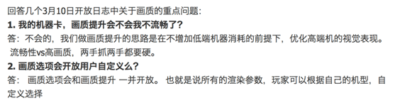 很多玩家在看到如此精美的画质在激动之余,不免担心这样高质量的画面品质是否会对适配有影响,策划大大很贴心的回答了大家的疑问——