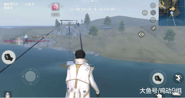 如果能够幸运的落到平台上,走到了钢索上的时候,你就可以挑战这个可以说是《荒野行动》中最难的挑战项目了!其实我觉得官方应该出一个成就才对得起这个挑战啊! |
