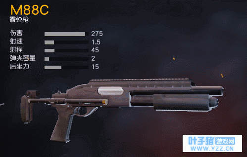 相比之下S12K有着较高的射速,输出威力也不错,但射程相对较低,所以更适合近距离作战。 而M860有着较高的弹夹容量和较高的射程,但由于弹道较为发散,射击远处敌人时精准度下降,同样也适合近距离作战。 相比现有的两把霰弹枪, M88C的适用范围更加广 , 近距离拥有超高的爆发 ,搭配红点瞄准镜, 面对中等距离的敌人也不会束手无策 。 特殊的换弹技巧M88C弹夹容量为2发,不过由于参考了现实中的枪械原理,这把枪换弹有特殊的技巧。