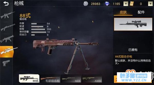 第二把同样是出现在空投中的枪械——AUG,裸枪42发子弹让你不用再为换弹发愁,而且不需要担心瞄准镜问题,因为它自带二倍镜。 88式