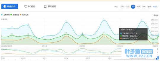 而荒野行动又是由绝地求生改编的手游。那么时间算来看看也有半年了,荒野行动,绝地求生和王者荣耀现在如何了呢。咱们一起看看他们搜索热度的表现就明白一些了。 替换高清大图