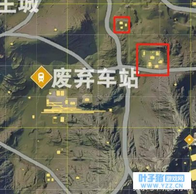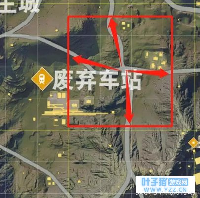 走到高架桥的边缘,把之前捡到的高倍镜装上,就可以观察四周啦。废弃车站的四周都是山坡,总体来说掩体不是太多,如果敌人从周围路过,是非常容易被你发现的。 天命妹友情提示:在高处瞄人的时候最好采用趴下的姿势,否则在你看到敌人之前,敌人很可能就已经发现你了。此时你在桥上可活动范围较少,相对不好躲藏。 4、交通便利,四个方向都有公路和刷车点。 如图所见,废弃车站正好在两条主公路的交界旁,交通四通八达。 沿着四个方向的公路走,有非常大的几率能找到载具。一般来说,在红框范围内的公路旁就能找到,如果运气欠佳,再往外走一段路,载具嘛,总会有的。