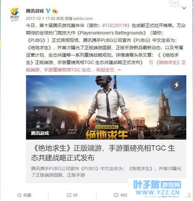 随后没过一段时间,国内最大的游戏厂商腾讯游戏就宣布与PUBG合作,将会在不长时间之后发布正版《绝地求生》手游。
