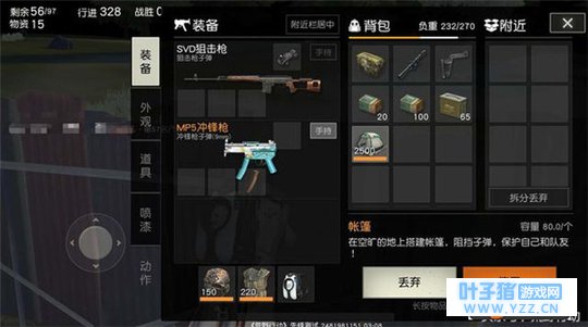 不过它却有着荒野行动最独特的功能,它能够提供高空视野,侦查四周战况,让你更好地掌控局势,所以看到它就毫不犹豫地捡起来吧! 帐篷