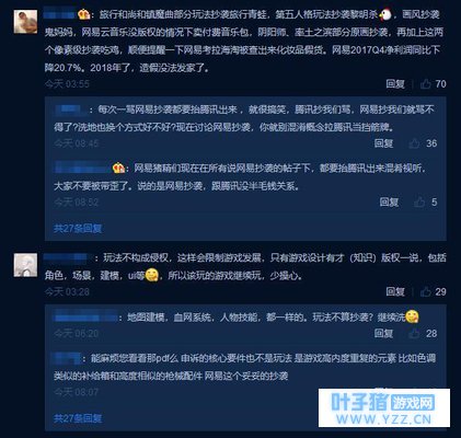 由于目前《绝地求生》在中国的版权已经被腾讯拿下,所以很多玩家猜测此次起诉事件很有可能是腾讯背后主导,以此来限制网易两款手游的发展。但是更多的玩家表示,即使这样这次仍然支持腾讯,对于山寨和抄袭我们绝不支持。