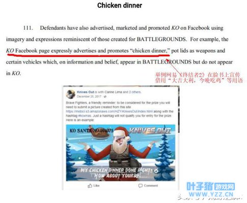 这是PUBG公司给出的一些关于侵权方面的问题,举例网易在游戏中借用“大吉大利,今晚吃鸡”等用语有侵犯到自己的知识产权。