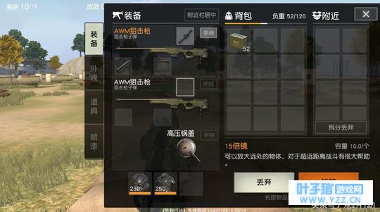 燃油是唯一可以为载具续航的道具,所以很多玩家会在背包中准备一桶燃油。但是很多老玩家早已摸清地图载具刷新点,并且对车辆耗油判断准确,所以他们会选择丢弃燃油。 15 倍镜
