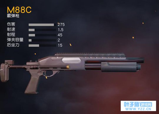 M88C散弹枪,275惊人的伤害力,简直比得上一个小炮了,唯一的不足就是只能近距离实用,攻房子炮楼之类的用着是屡试不爽,但正式作战用这个那就好比抛石头了哈哈。