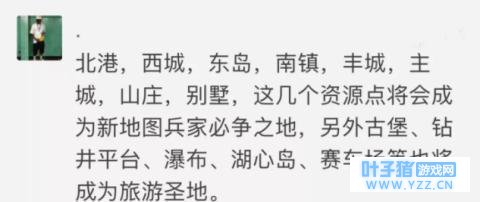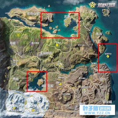 如上图所示,三片水域将会成为今后各位精英们水下作战的热门场所。所以喜欢水战的,一定要率先抢占如北港,湖边别墅等水域边的资源点哦~