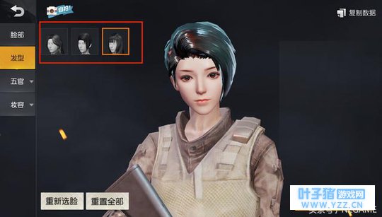 脸部设置 发型设置 体验服暂时上线共有 三 个可选发型 项目供玩家进行选择,女生也有短发哦~