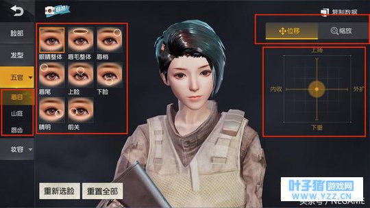 五官设置 捏脸系统中的五官设置分为 眉目 山庭 唇齿 三个大类,每个大类下都有数个小类共18个,你喜欢的样子荒野都有!