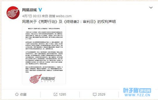 那么网易的荒野行动与终结者抄袭了没有?其实咱们都心知肚明。 但是网易却不认账啊!并且对于这件事发表了自己的权利声明。 它表示:荒野行动和终结者2都是自主开发的产品,原创的,抄你妹呀抄!