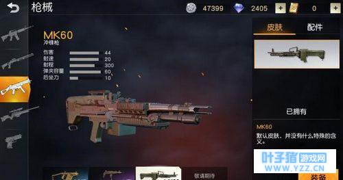 2、MK60 第二名正是大家最期待的MK60,只能够通过空投获取,拥有42的伤害,比大部分步枪伤害还要高,20的射速加上60的弹夹容量让MK60拥有极致般的扫射体验,火力强到可怕!